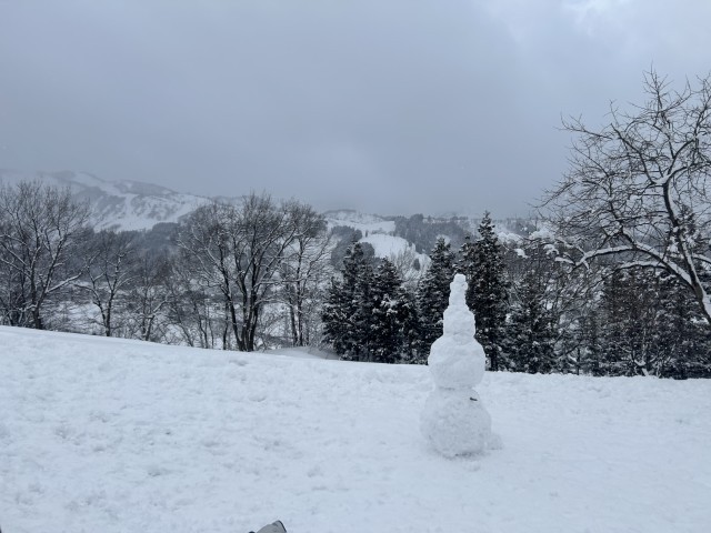 雪は降っていますがあまり寒くなく、雪遊び日和。班ごとに雪だるまを作りました。、そ...