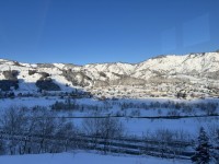 快晴です。美しい山並みを見ながら、朝食はバイキングです