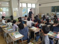 5年生の教室では、日本地図を使った話し合い、漢字練習の仕方、社会科の授業開き等、...