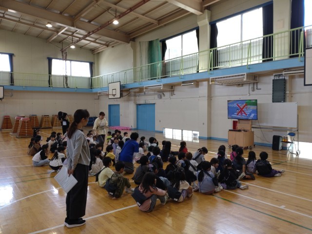 警察署の方をお招きして、1年生の交通安全教室、歩行訓練を行いました。交通安全についての映像を視聴してから、安全な歩行の仕方について、体育館で歩行訓練をしながら学びました。横断歩道の渡り方や道路の歩き方...