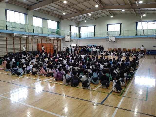 転出、退職された先生方をお招きして、離任式を行いました。来校された8名の先生方に、子供たちからのお手紙を渡し、離任のご挨拶を頂きました。最後に、全員で元気よく校歌を歌い、感謝の気持ちを伝えました。鹿骨...