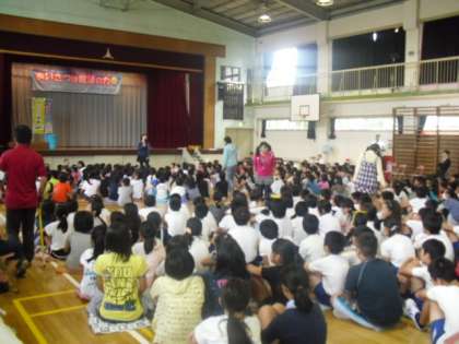 本日3時間目に、「二期会マミーシンガーズ」の方々が来校され、音楽劇鑑賞会が行われました。きれいな歌声をまじえながら、あいさつの大切さや環境問題について教えて頂きました。