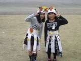 1年生が、枯葉を集めてかんむりやスカートを飾っていました。いろいろ準備すると...