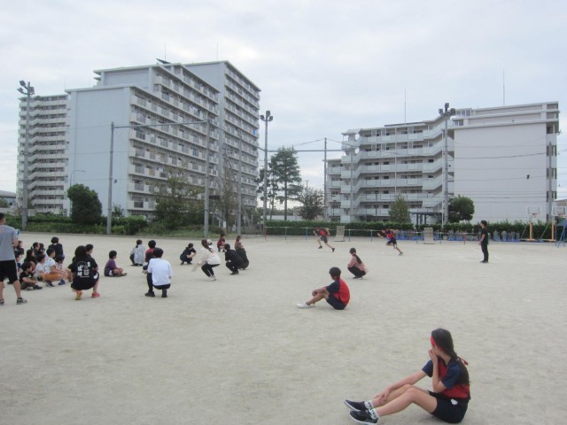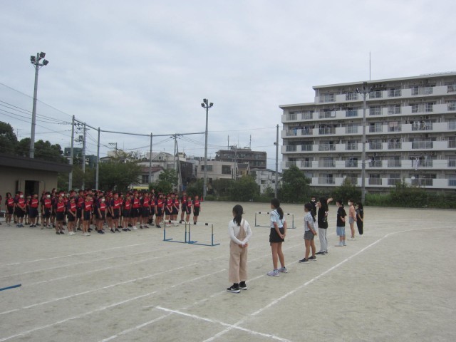 火曜日には、連合運動会に出場する6年生を応援しよう、と全校児童が校庭に集合しました。