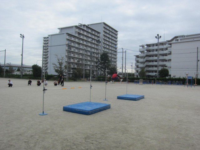 6年生の模範試技に歓声が上がり、まんざらでもない様子。