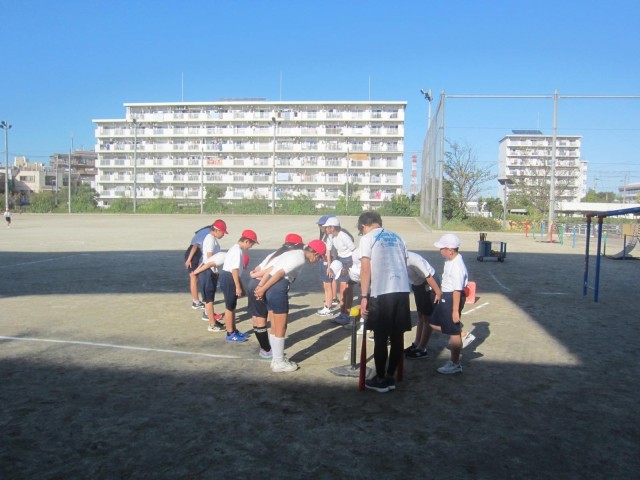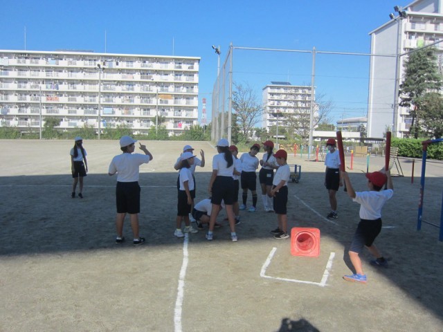 5年生が体育の学習で、ティーボールに取り組んでいました。