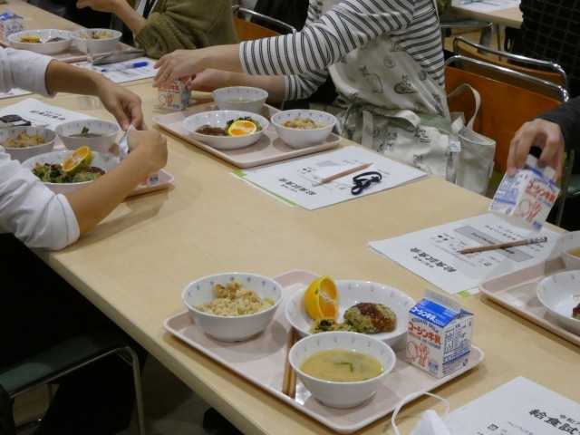 給食試食会には46名の保護者の方が参加してくださいました。子どもたちの給食準備の様子を廊下から参観し、どのような給食を食べているのか等、篠三小の給食を知っていただく良い機会となったのではないでしょうか?