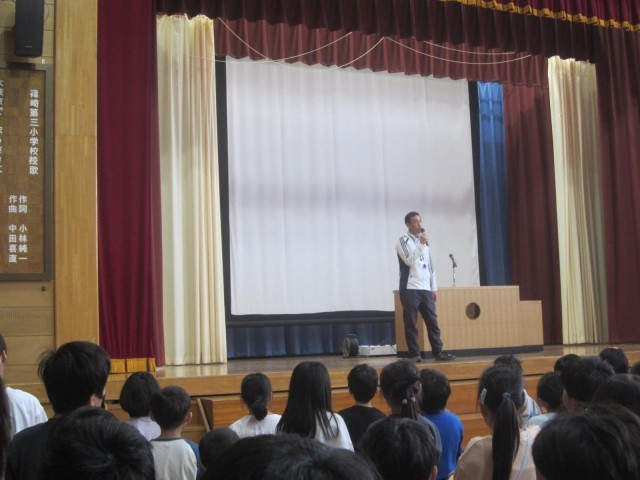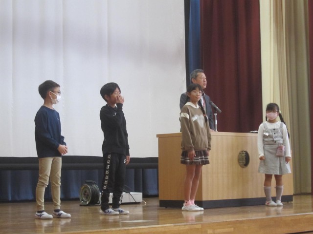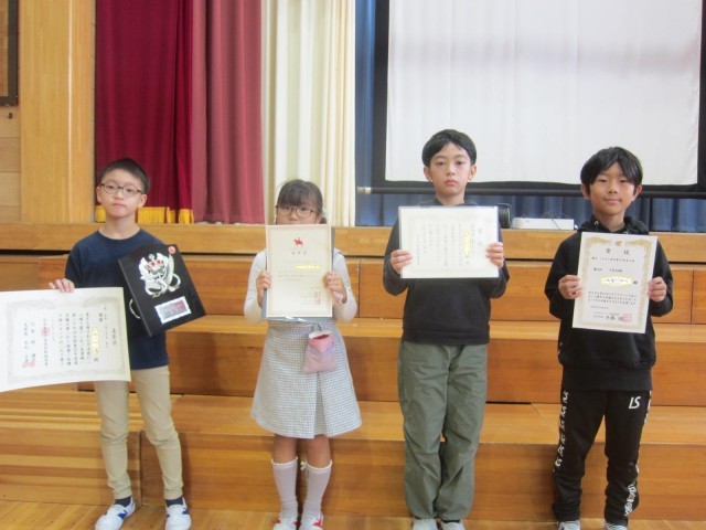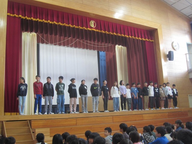 今日の全校朝会は、先日行われた6年生の体育大会の入賞者表彰。