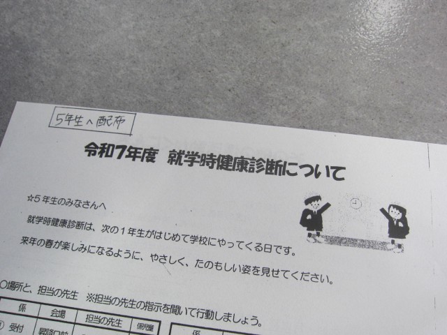 来年度、本校に入学予定の園児が健康診断にやってきます。