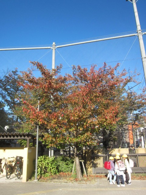 正門を入ってすぐのところにある桜の木も紅葉が目立ってきました。