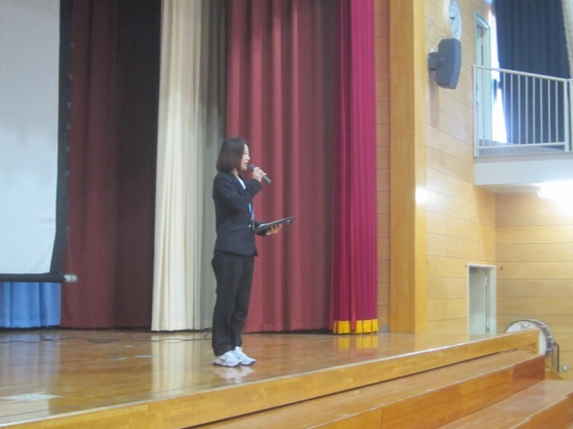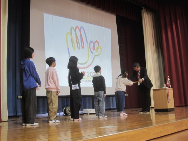 さて、本日の全校朝会は、間もなく開催されるデフリンピックについてのお話。