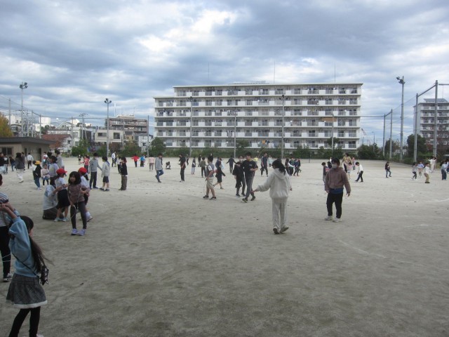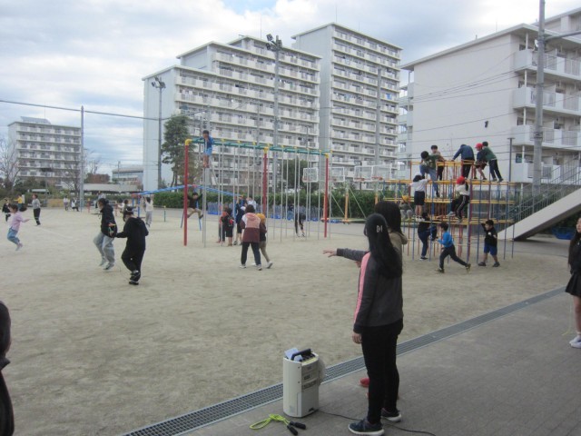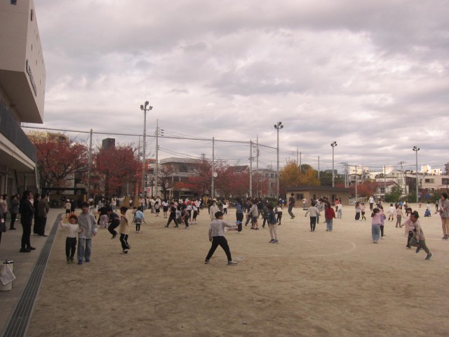 軽快な音楽に合わせて、校庭中に広がった子供たちがなわとびにチャレンジしています。