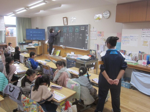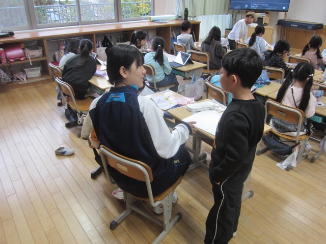 さっそくいろいろなクラスに入ってもらい、教室にどんな仕事があるのかを体験してもらいましたが、とても意欲的に子供たちに関わってくれている様子です。