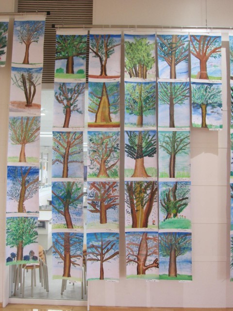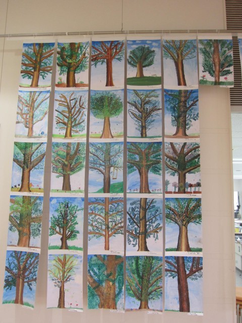 最初に見た時は、まだ幹しかないときで「枯れ木を描いてるの?」と思ってしまった。