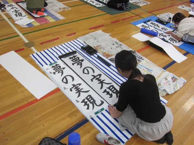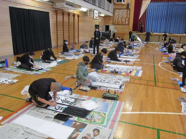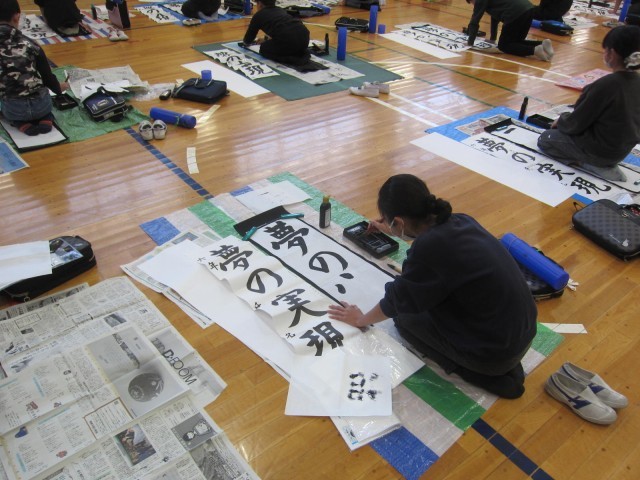 【校長のひとりごと】6年生 書き初め大会