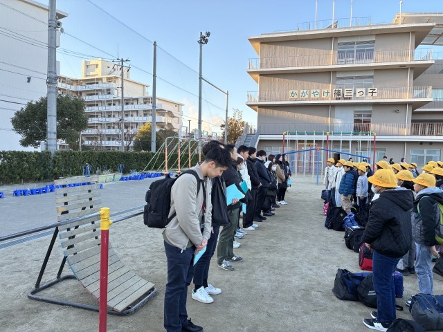 空は快晴、登校してきた子供たちは元気そのもの。