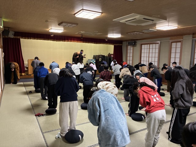 前半は、なんと坐禅体験。