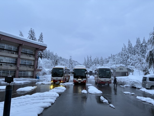 ご飯が美味しい朝食をいただいて、WSのメインイベント、スキーに出発です!