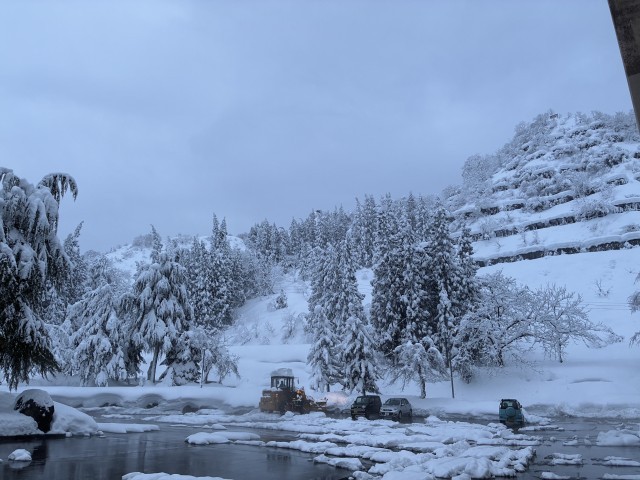 雪国らしい白い空が広がっています。
