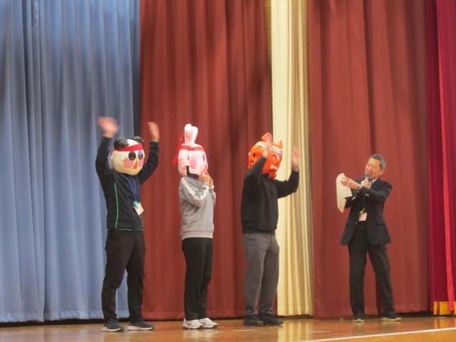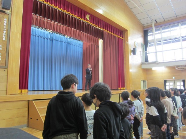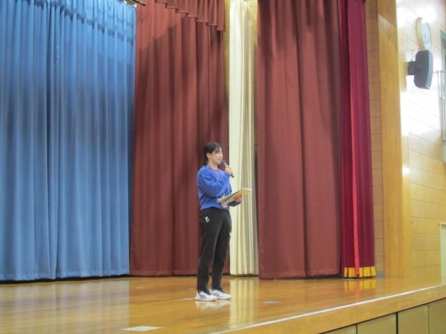 朝会では、5年生のウインタースクールが実りの多い行事だったことを伝えると、