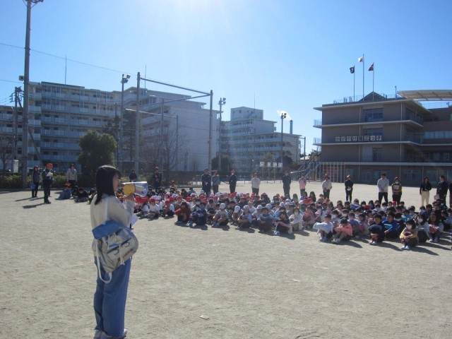 空は澄み渡っているのですが、とにかく寒い今日、避難訓練を行いました。