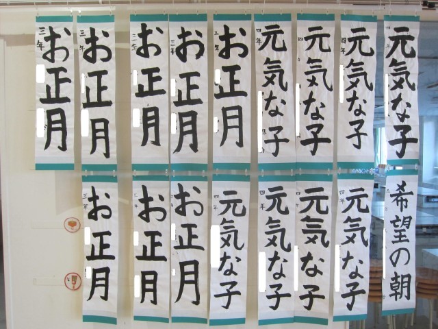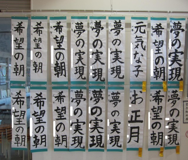 3年生以上の毛筆作品から、校内の入賞者と学校推薦を選びました。