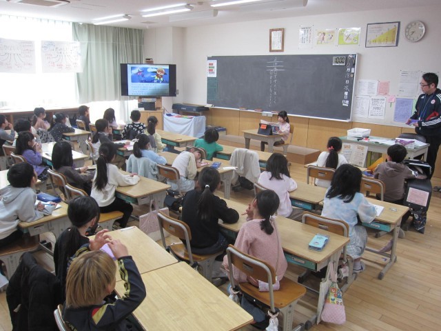 今日はウエズレーさんに高学年児童を対象に読み聞かせをしていただきました。