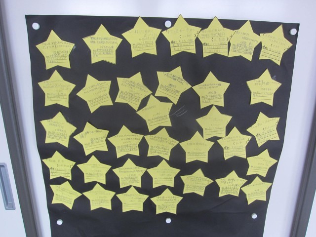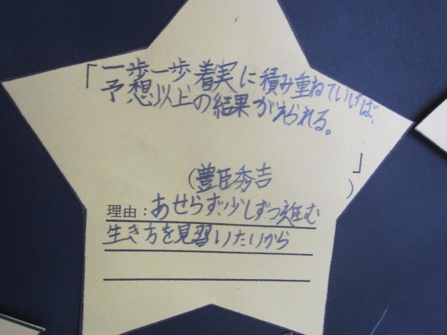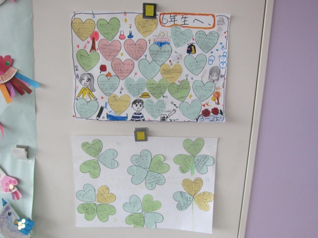 廊下には、下級生からのお礼の手紙や有名人の言葉を集めた掲示もあります。