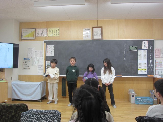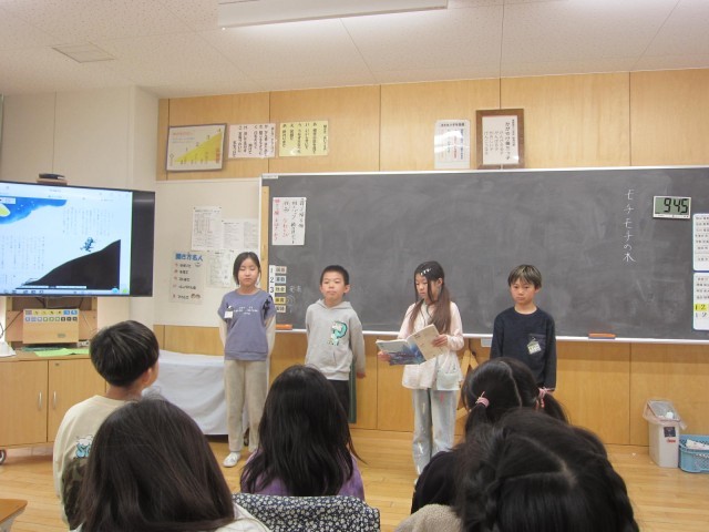 国語「モチモチの木」を役割分担して、みんなで読み合い聞き合いするというもの。