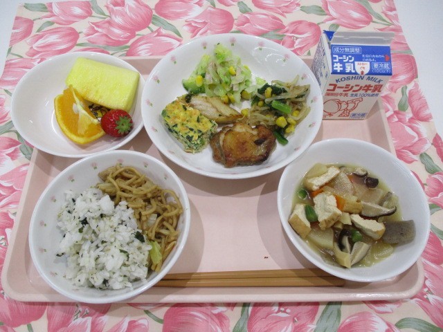 今日は6年生特別給食です。一人ひとりが栄養のバランスを考えて、組み合わせて選べるようにしました。