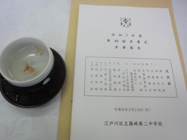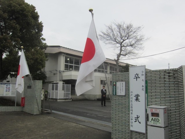 今日はお隣の篠崎第二中学校の卒業式に参列させていただきました。