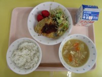 ■献立ごはん・鶏肉のねぎみそ焼き・うどのきんぴら・かきたま汁・牛乳■「うど」は、...