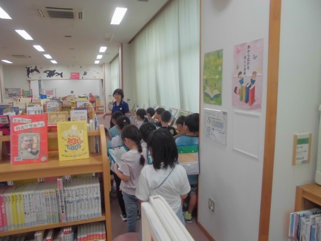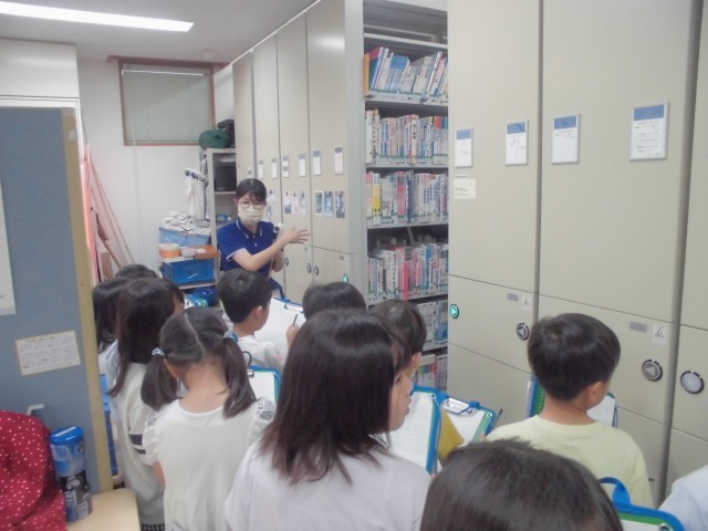 子どもライブラリーでは、移動する閉架書庫に驚き、読み聞かせに熱心に聞き入りました。