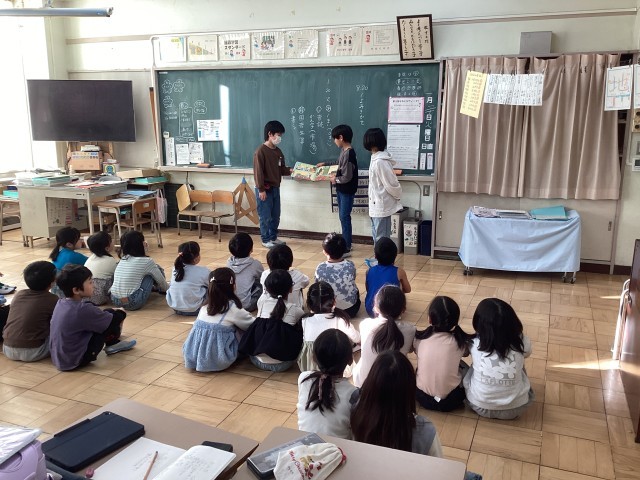 朝の読書タイムの時間に、図書委員会が1・2年生のクラスで読み聞かせをしました。