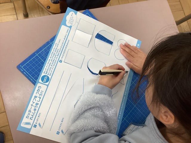 図工「わくわくカッターナイフ」において、小学校で初めてカッターナイフを使った授業をしました。
