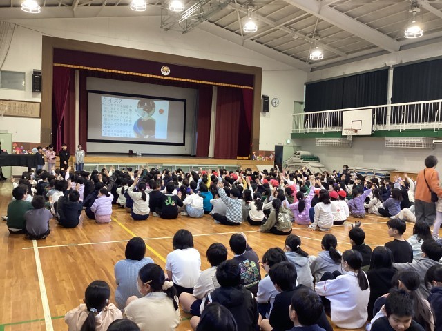 22日(木)にユニセフ集会でユニセフ募金の目的、歴史、100円でできることをクイズを交えて分かりやすく紹介しました。