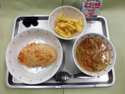 生地と具も給食室の手作りです。生地の周りのパン粉は、軽く焼いてから生地につけて、さらに焼くのでカリッとしています。