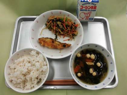 今日の魚は、ホキを使いました。ホキは、白身魚で脂質は少なく、味はあっさりしています。練り製品に利用されるほか、白身魚フライやファストフードなどに使われています。給食では片栗粉をつけて油で揚げ、甘辛いタレをかけました。