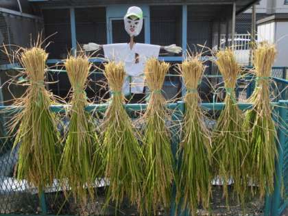 落水(おとしみず)から約10日たちました。台風に備えて稲刈りをしました。田んぼを作ってから約5か月。初めての収穫です。