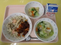 ■今日は石川県の郷土料理、ぶり大根とめった汁を作りました。石川県は『ぶり漁』が盛んで、ぶりを使った料理がたくさんあります。子供たちには実がしっかりしているぶりは少し食べづらさや、ごはんのおかずとしては物足りなさを感じる子もいたようです。高学年や先生方には好評でした。