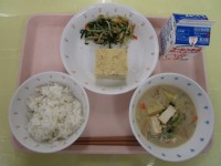 できごと ■献立ごはん・五目たまご焼き・水菜のおかか和え・ごま豆乳みそ汁・牛乳■「豆乳」は...