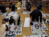 6年の大友先生が指導者となって、書き初め練習会を行いました。 「とめ」や「は...