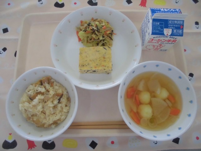 令和8年1月19日(月)【献立】かやくごはん飲用牛乳擬製豆腐キャベツとツナの磯和...