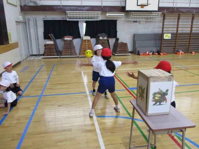 回数を重ねるにつれて、投げたボールが的に当たるようになってきました。