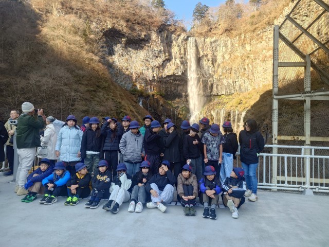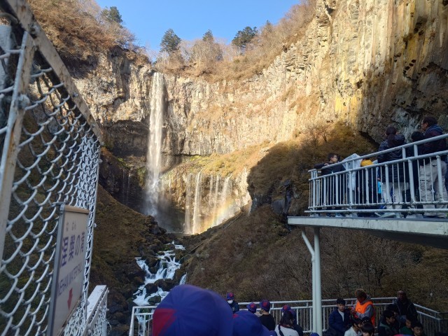 華厳の滝。滝下に虹も見れました。