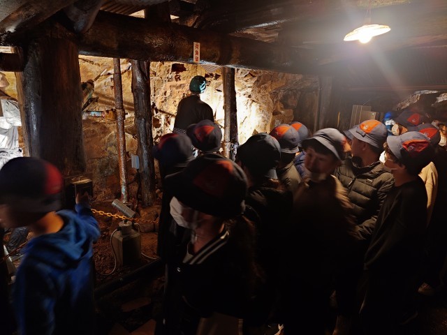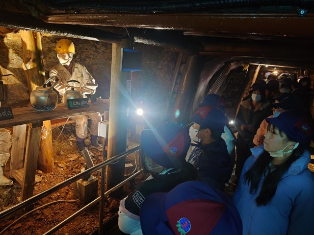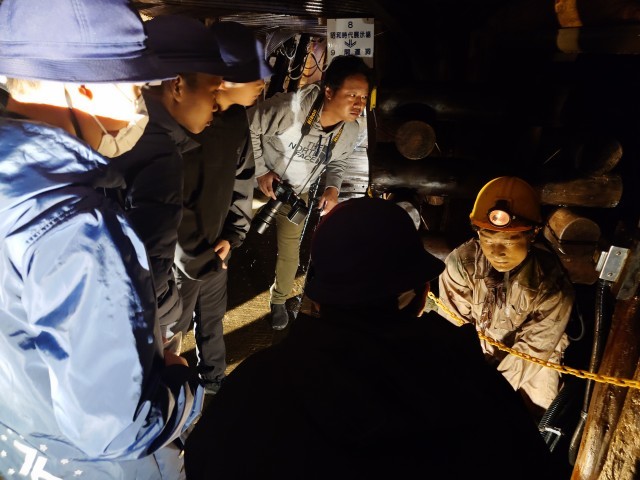 トロッコに乗って坑内へ。