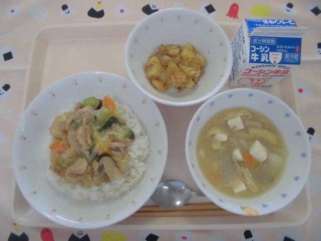 「田舎汁」には、里芋やごぼう、人参、大根などの食物繊維たっぷりの野菜を使いました。食物繊維には、便通改善や腸内環境の整備、血糖値やコレステロールの調整などの働きがあります。また、汁物の具にすることで、野菜をたくさんとることができます。給食に限らず、ご家庭でも野菜を積極的に食べていただければと思います。
