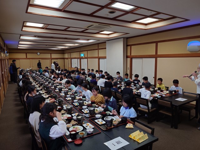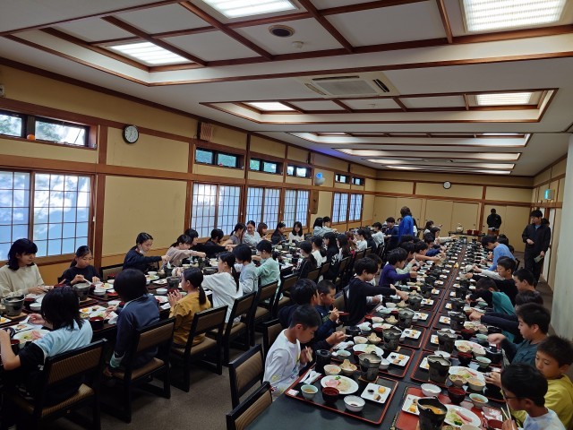 朝食。温かい手作り豆腐をおいしくいただいています。