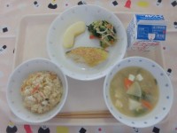 鮭茶漬けは、給食室でとった「かつおだし」を鮭ごはんにかけていただきます。