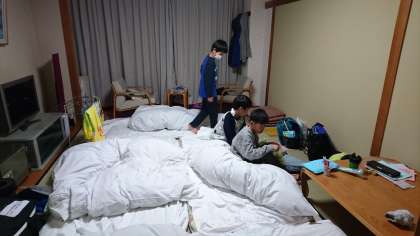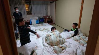 ふとん敷き。不慣れな友達もいる中、協力してがんばりました。